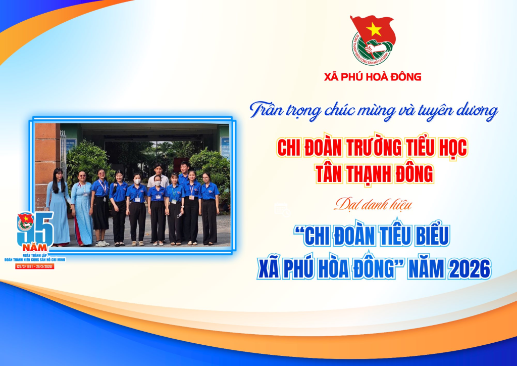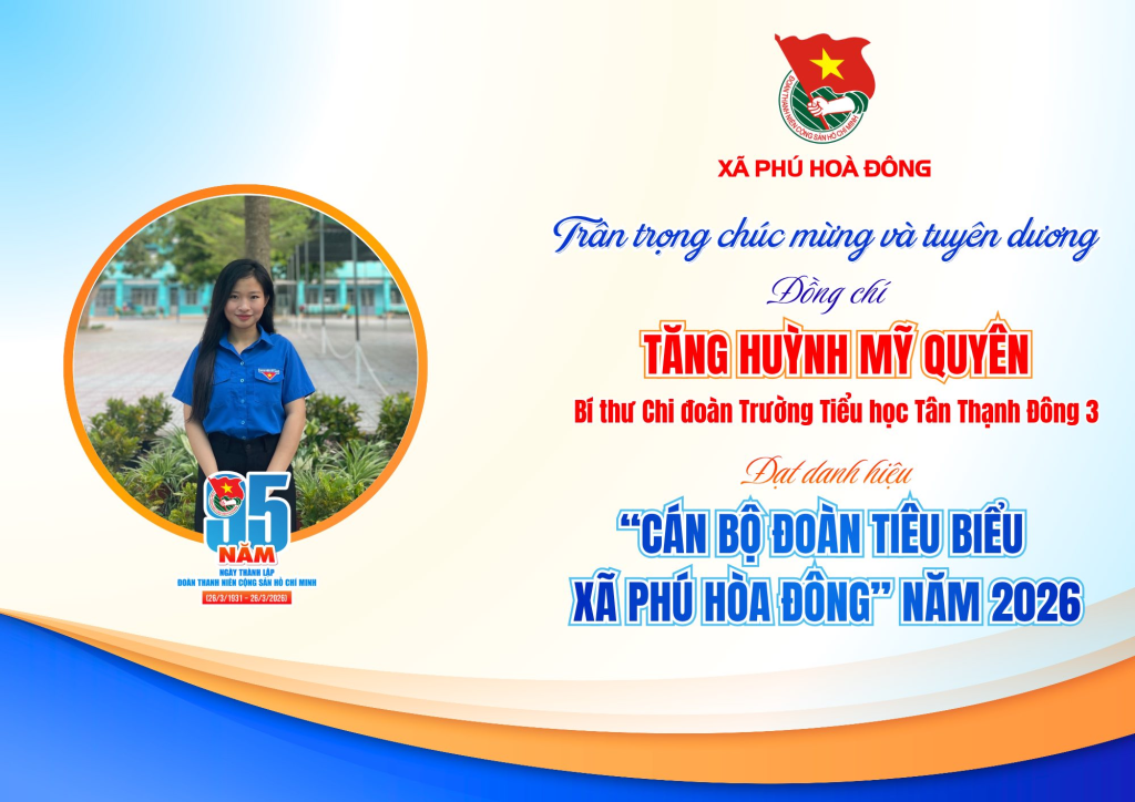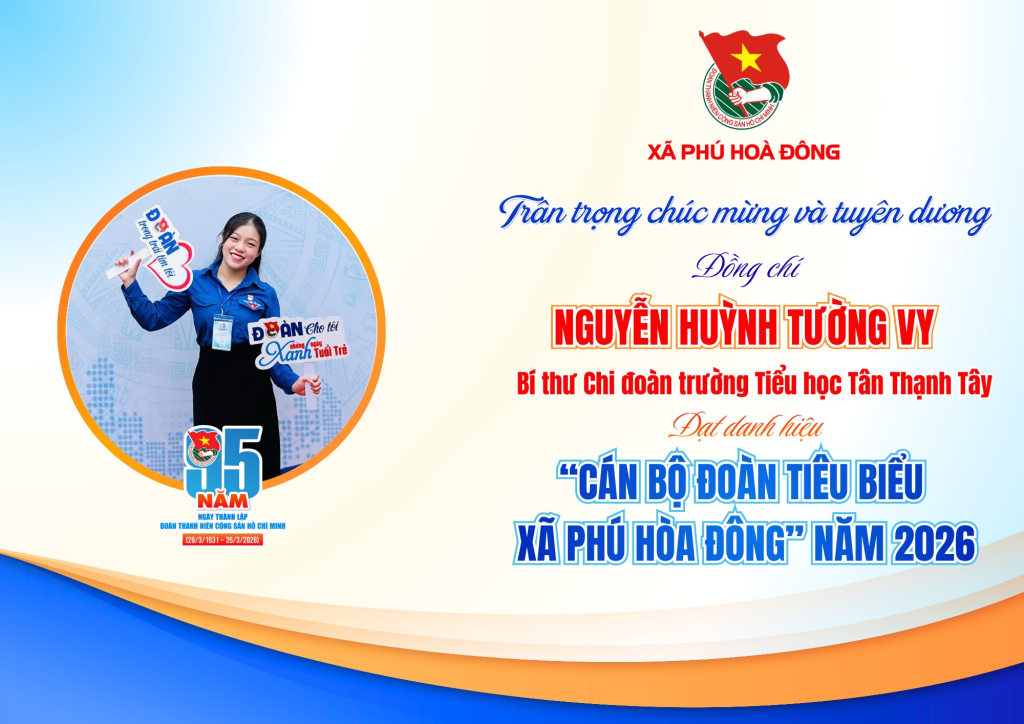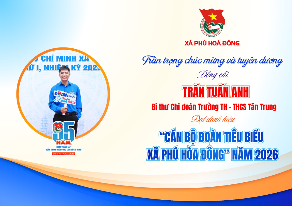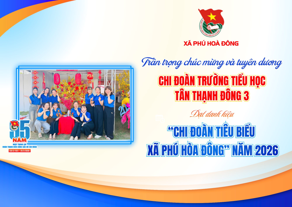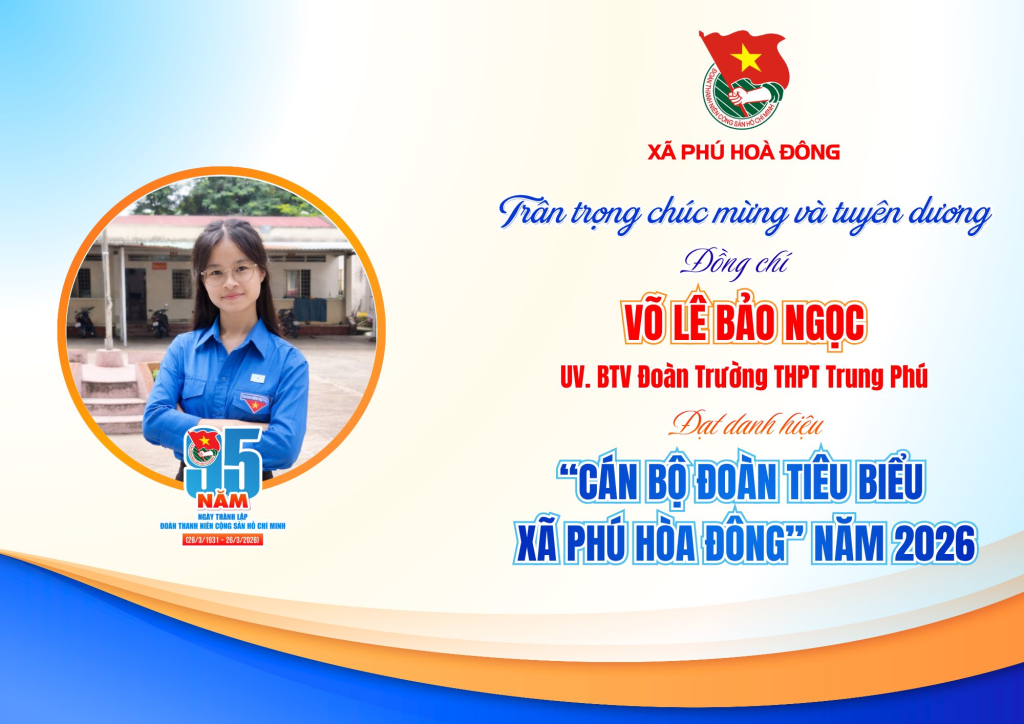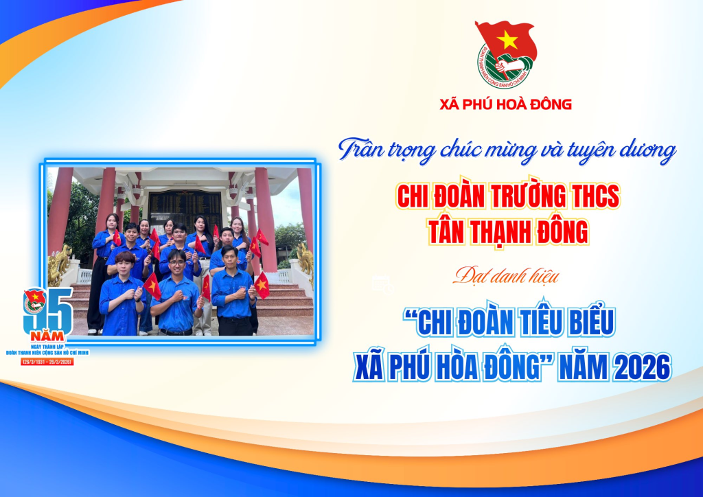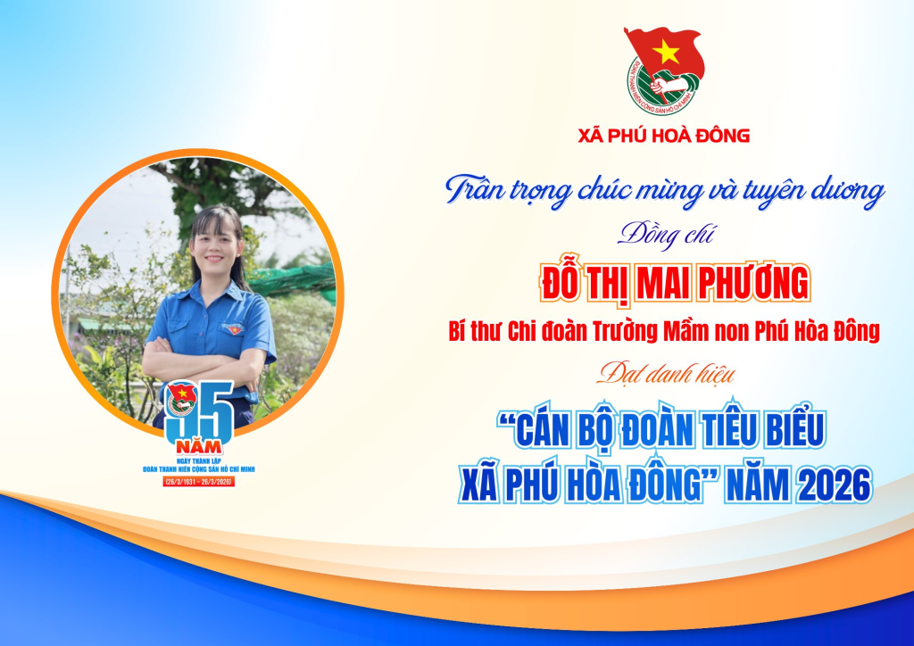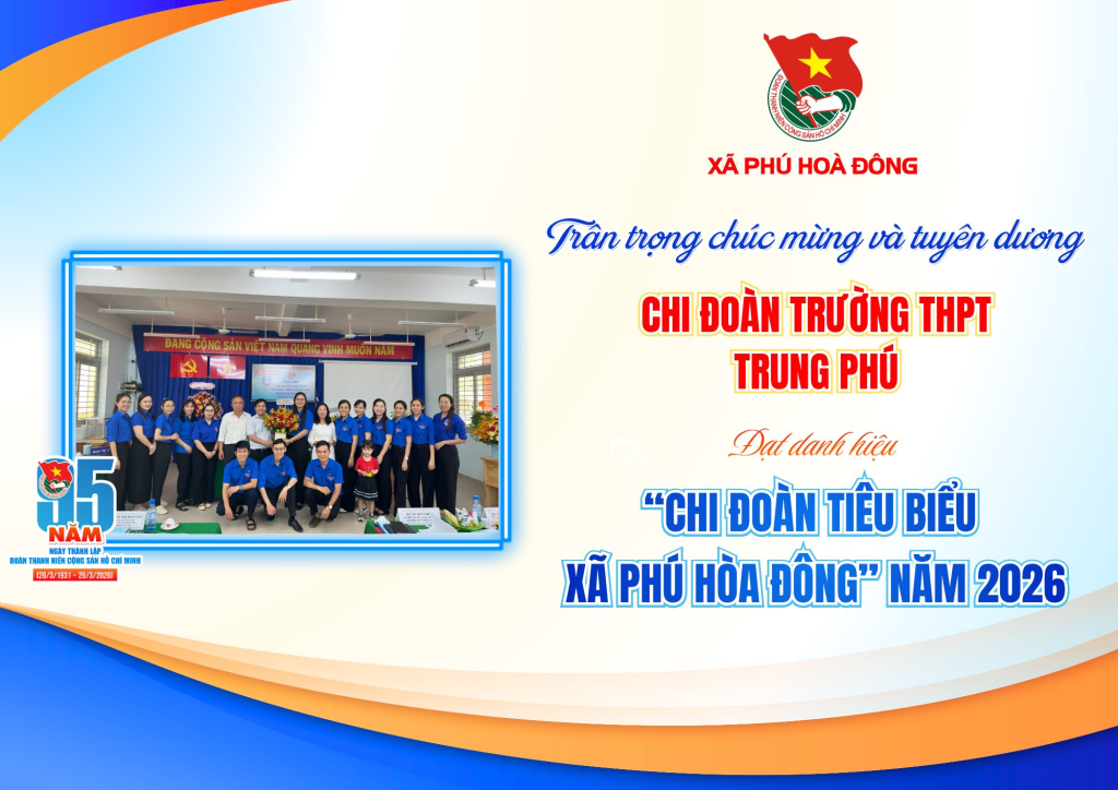 Ban Chấp hành Xã Đoàn Phú Hòa Đông trân trọng chúc mừng và tuyên dương 20 Chi đoàn tiêu biểu và 27 Cán bộ Đoàn tiêu biểu năm 2026.