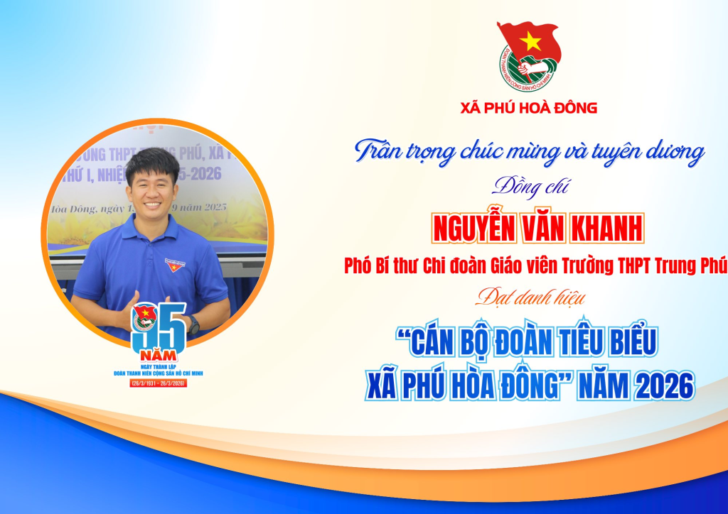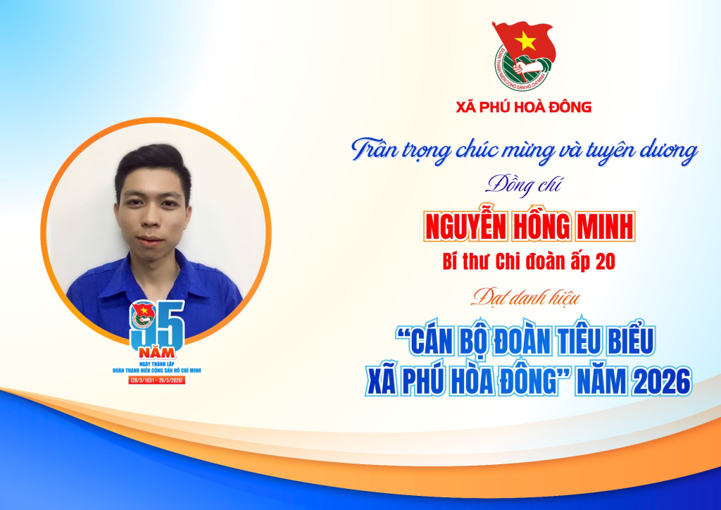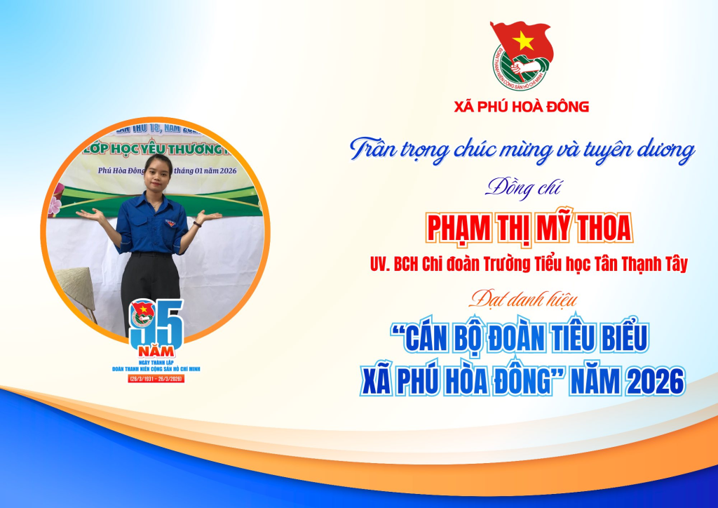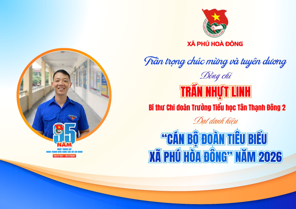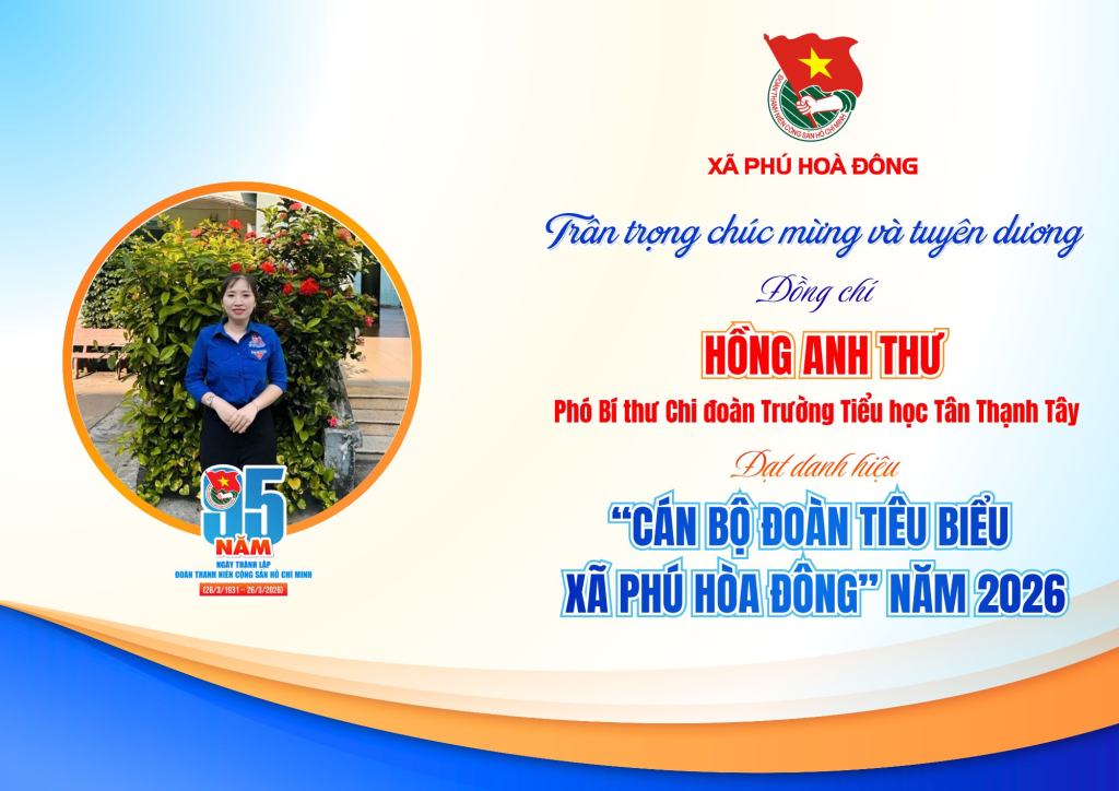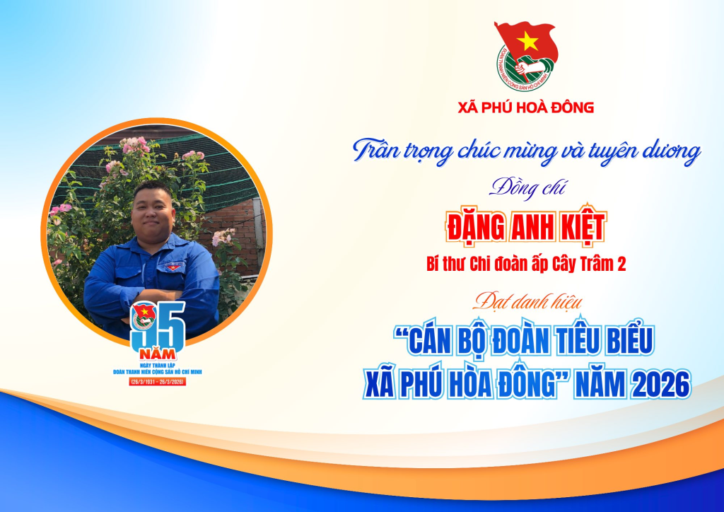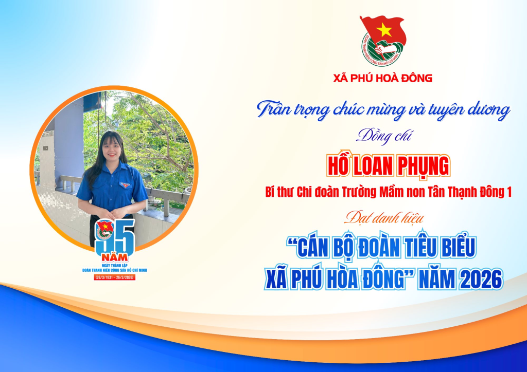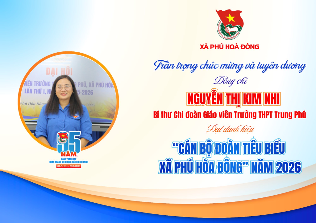 Ban Chấp hành Xã Đoàn Phú Hòa Đông trân trọng chúc mừng và tuyên dương 20 Chi đoàn tiêu biểu và 27 Cán bộ Đoàn tiêu biểu năm 2026.