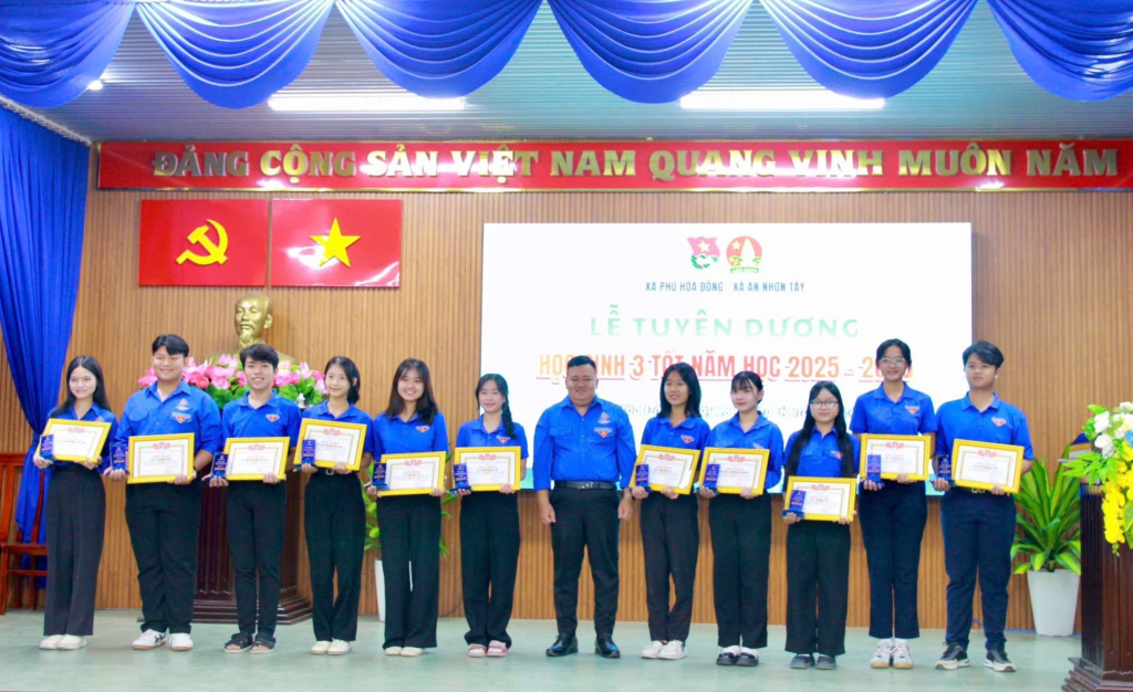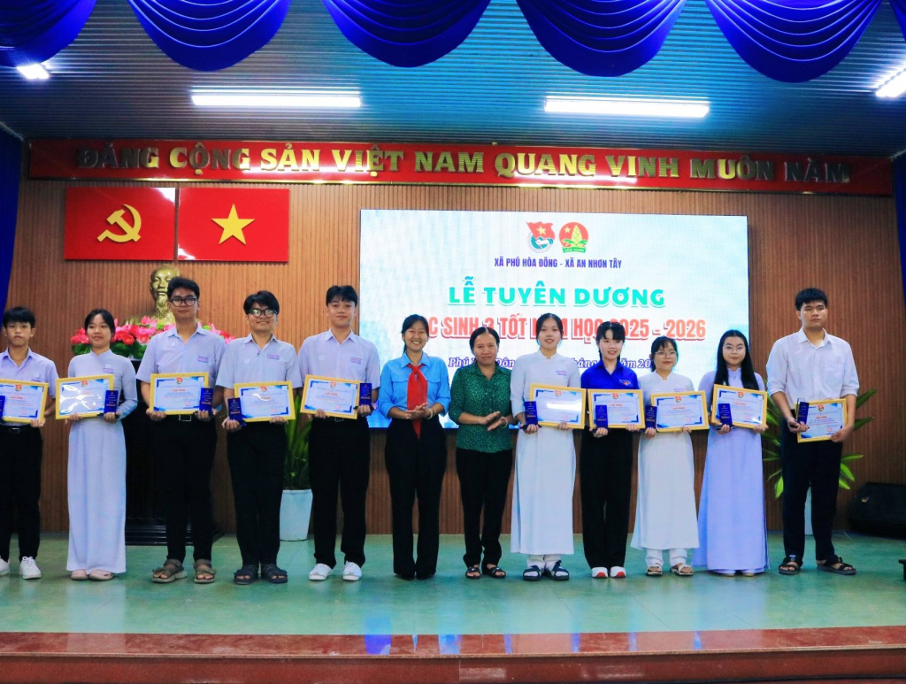 Ngày 18/01/2026, tại Hội trường Đảng ủy xã Phú Hòa Đông, Đoàn Thanh niên xã Phú Hòa Đông – xã An Nhơn Tây long trọng tổ chức Lễ tuyên dương danh hiệu “Học sinh 3 tốt” năm học 2025–2026 cho 31 học sinh tiêu biểu Trường THPT Trung Phú, THPT Phú Hòa và THPT An Nhơn Tây trên địa bàn 02 xã.