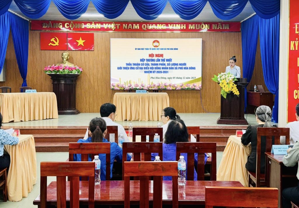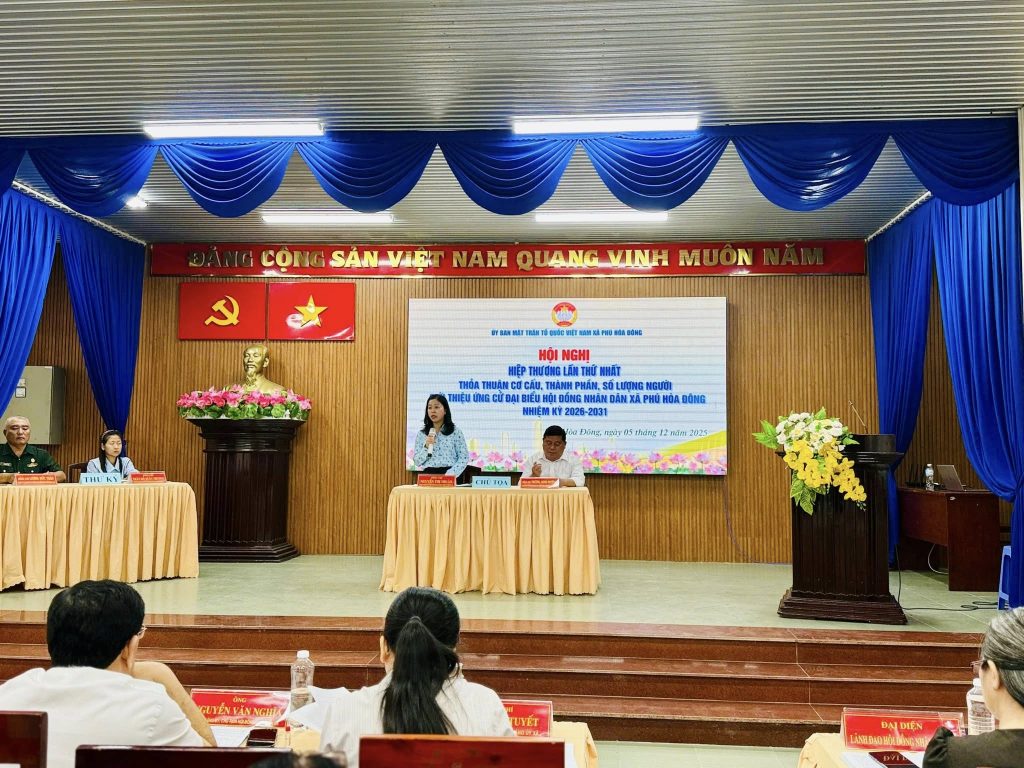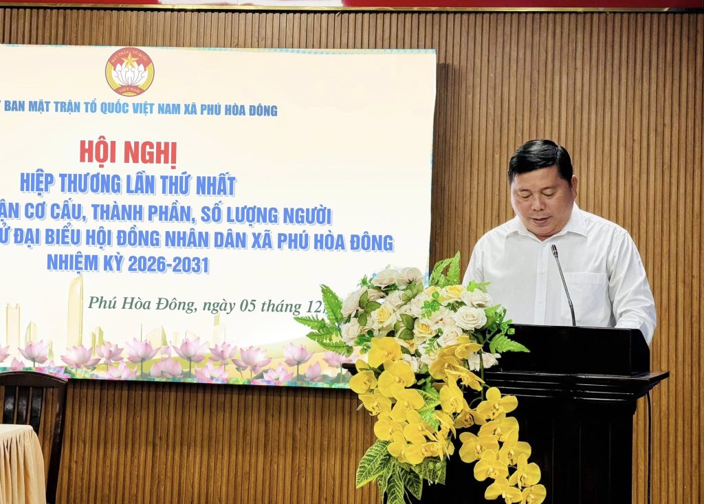Sáng ngày 05/12/2025, tại Hội trường Đảng ủy – Ủy ban MTTQ Việt Nam xã Phú Hòa Đông, Ủy ban MTTQ Việt Nam xã Phú Hòa Đông tổ chức Hội nghị Hiệp thương lần thứ nhất thỏa thuận về cơ cấu, thành phần, số lượng người được giới thiệu ứng cử đại biểu Hội đồng nhân dân xã Phú Hòa Đông nhiệm kỳ 2026 – 2031.