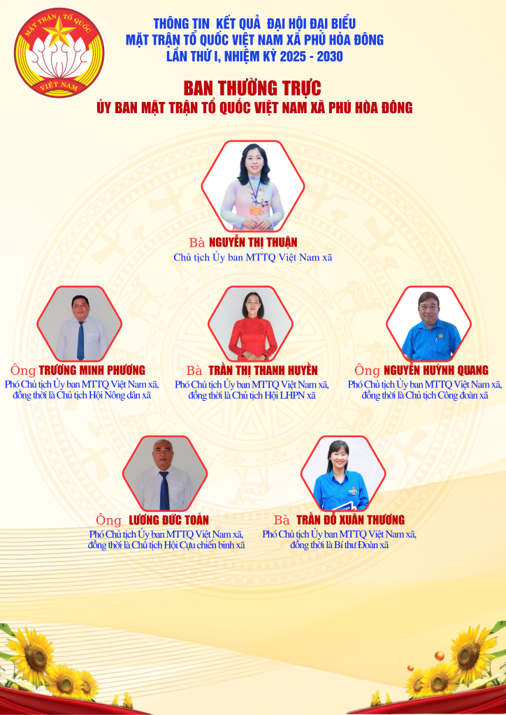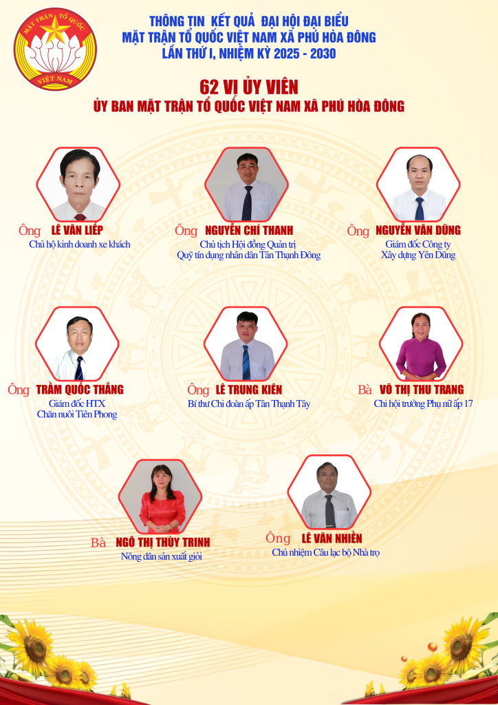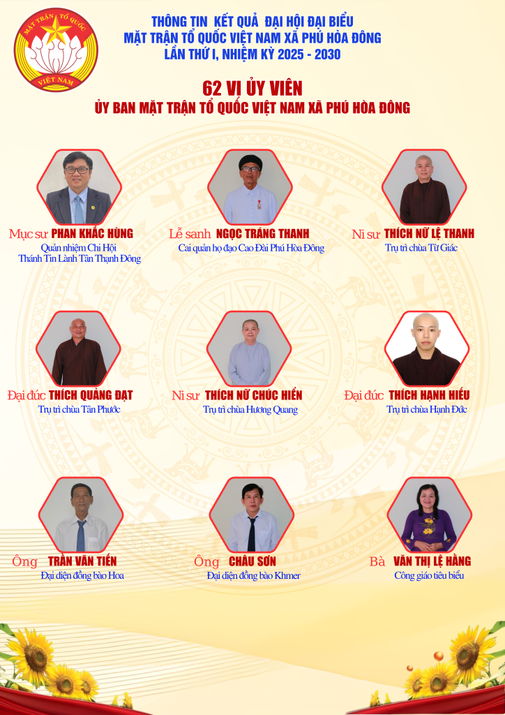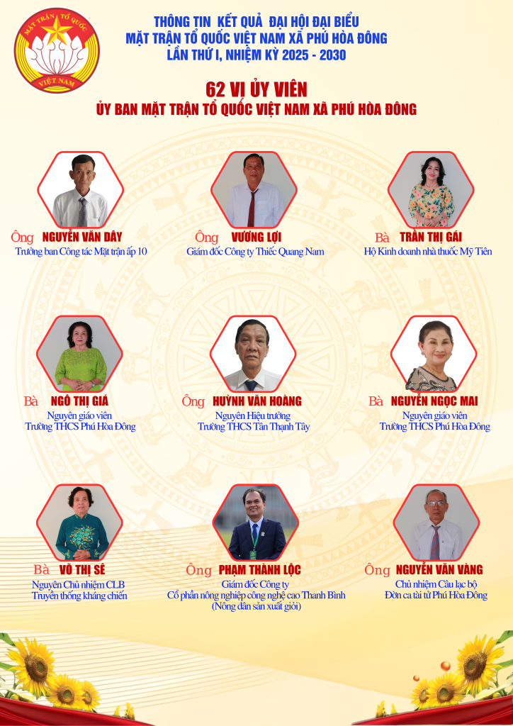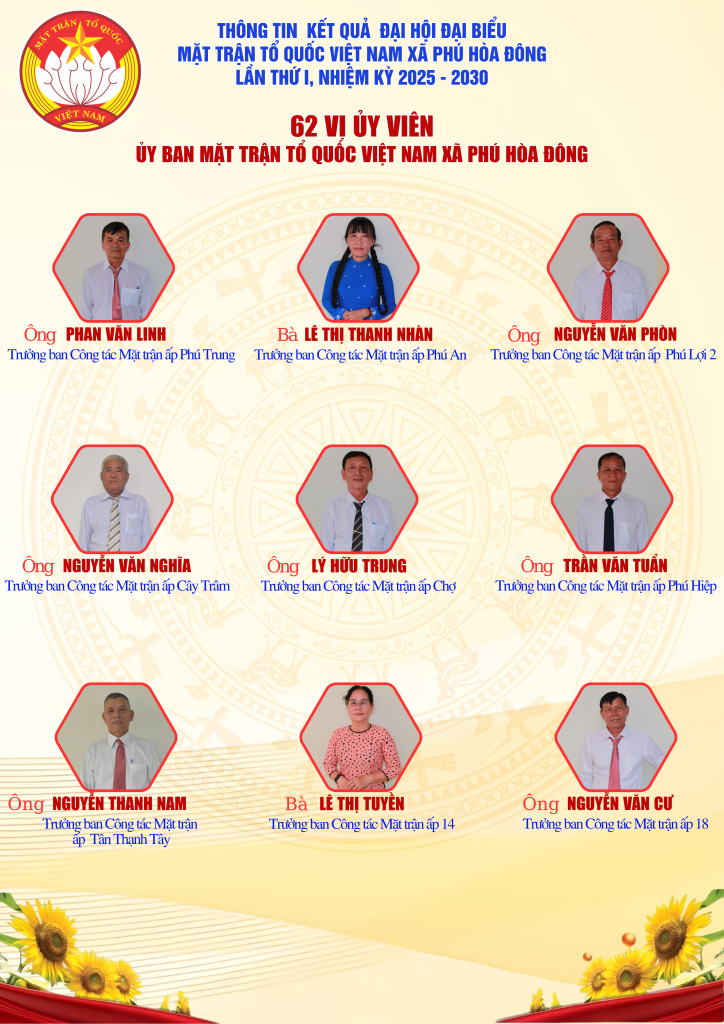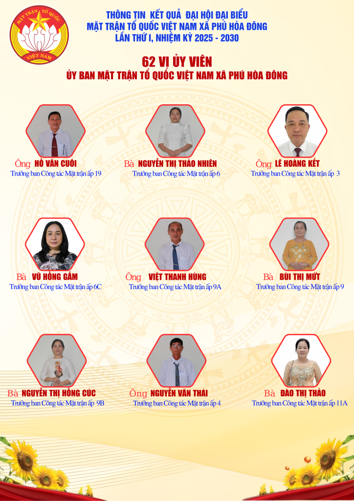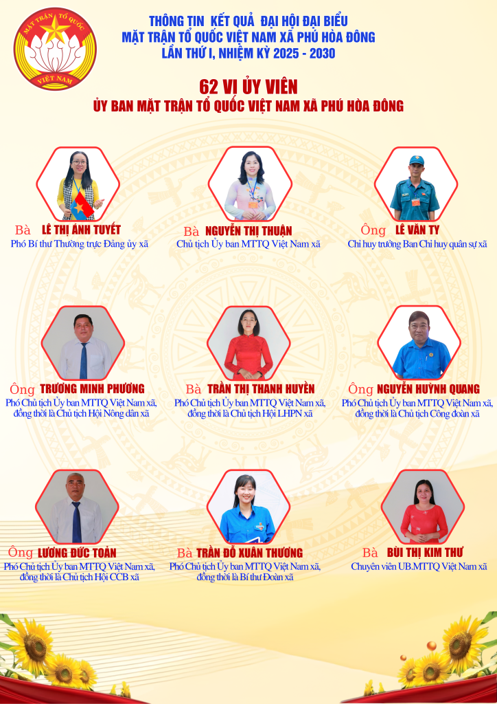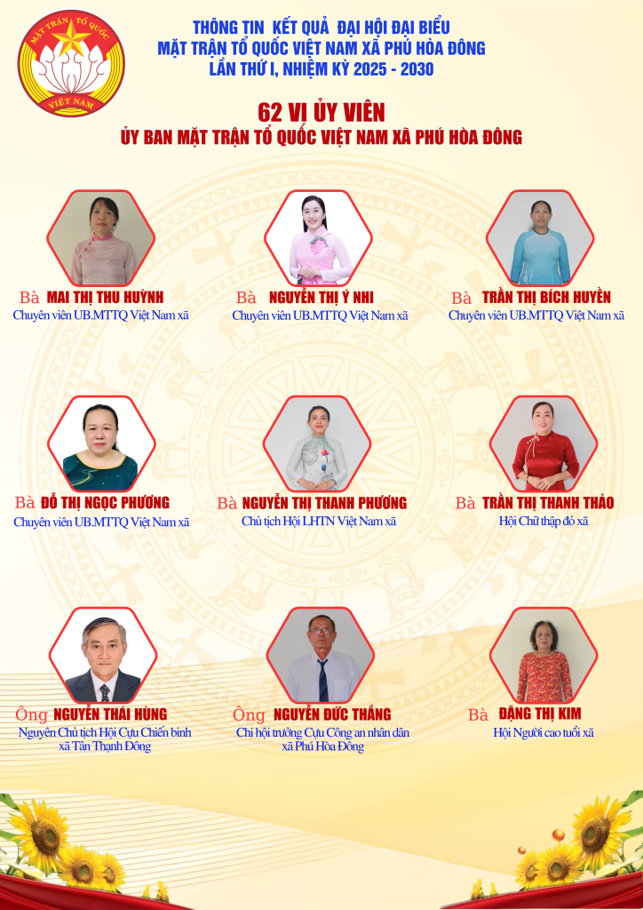 Trang chủ » Tin tức » Ủy ban Mặt trận Tổ quốc Việt Nam xã Phú Hòa Đông trân trọng giới thiệu Ban Thường trực và 62 vị Ủy viên Ủy ban Mặt trận Tổ quốc Việt Nam xã Phú Hòa Đông lần thứ I, nhiệm kỳ 2025 – 2030.