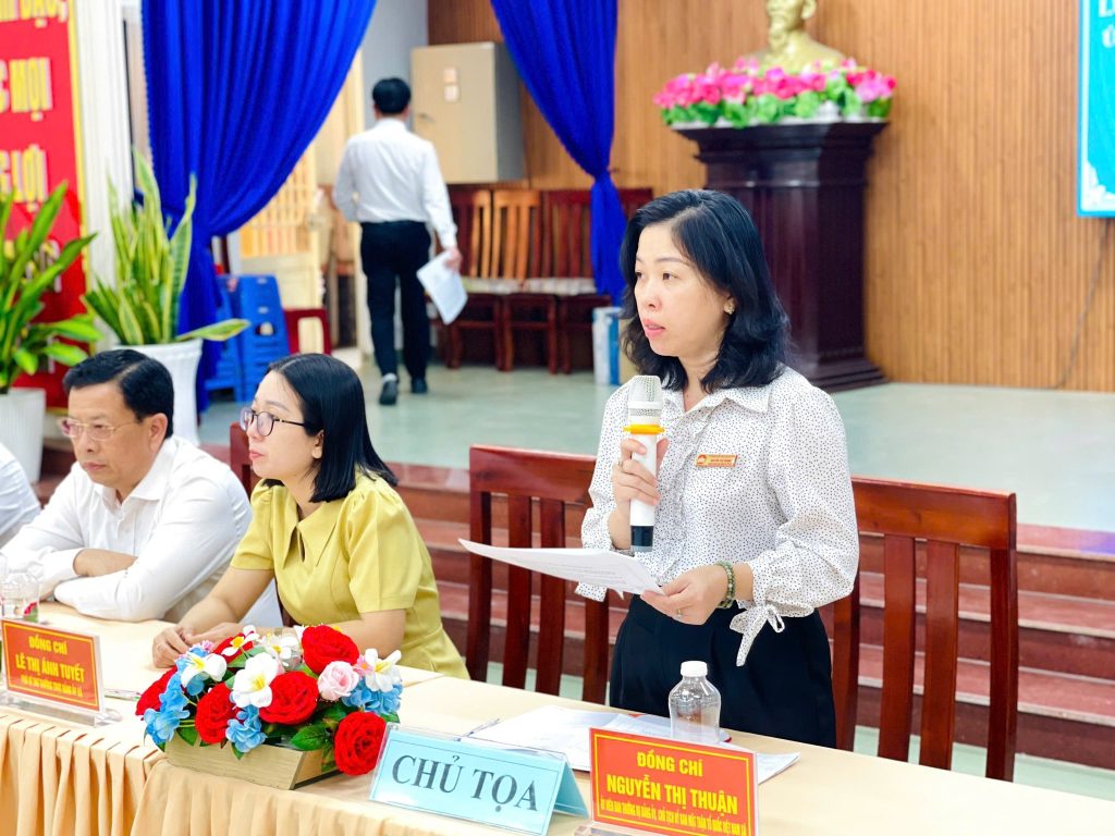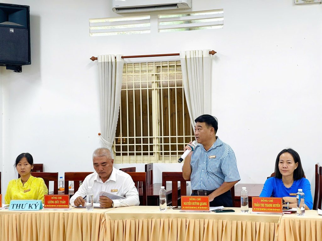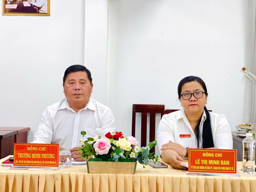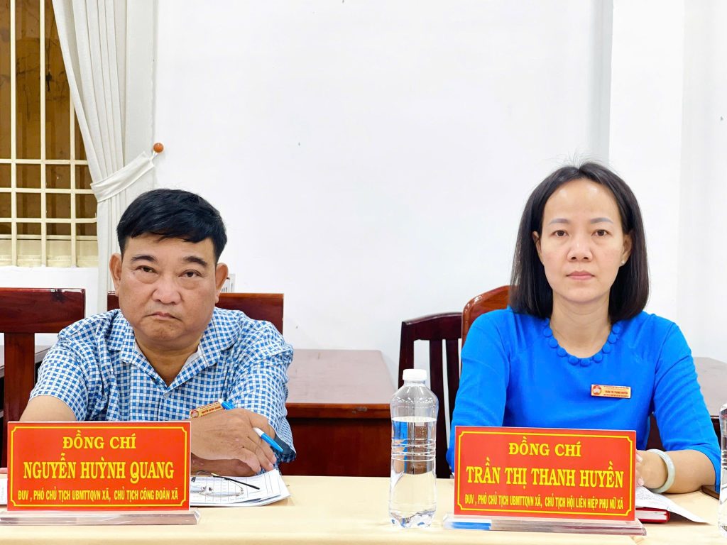 Về chủ tọa hội nghị: đồng chí Nguyễn Thị Thuận – Ủy viên Ban Thường vụ Đảng ủy, Chủ tịch Ủy ban MTTQ Việt Nam xã Phú Hòa Đông; đồng chí Trương Minh Phương – Đảng ủy viên, Phó Chủ tịch Thường trực Ủy ban MTTQ Việt Nam xã, Chủ tịch Hội Nông dân xã.