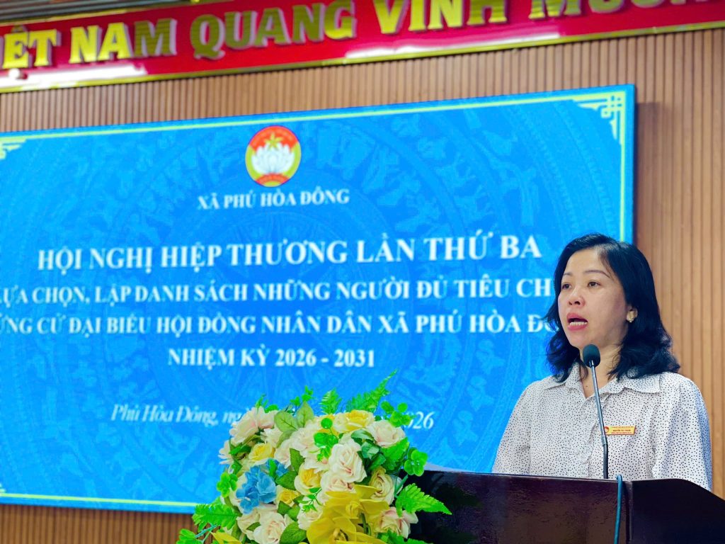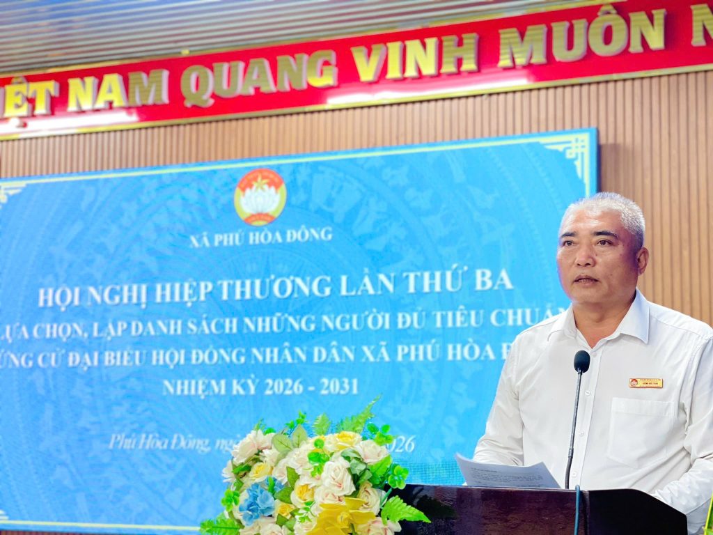 Chiều ngày 09/02/2026, Ban Thường trực Ủy ban Mặt trận Tổ quốc Việt Nam xã Phú Hòa Đông tổ chức Hội nghị hiệp thương lần thứ ba để lựa chọn, lập danh sách những người đủ tiêu chuẩn đại biểu Hội đồng Nhân dân xã, nhiệm kỳ 2026 – 2031.