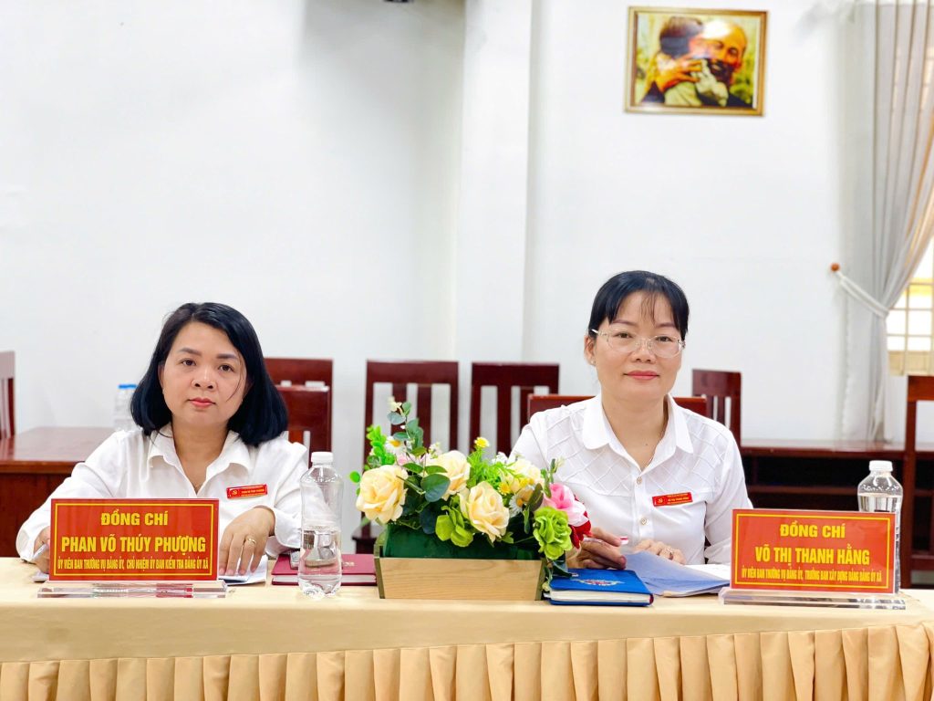 Tham dự hội nghị có đồng chí Ông Nguyễn Văn Nghĩa – Bí thư Đảng uỷ, Chủ tịch Hội đồng nhân xã; Bà Lê Thị Ánh Tuyết – Phó Bí thư Thường trực Đảng uỷ xã;; Bà Đỗ Thị Thanh Thuý – Uỷ viên Ban Thường vụ Đảng uỷ, Phó Chủ tịch Hội đồng nhân dân xã; Ông Trần Tuấn Khanh – Ủy viên Ban Thường vụ Đảng ủy, Phó Chủ tịch UBND xã; bà Võ Thị Thanh Hằng, Ủy viên Ban Thường vụ Đảng ủy, Trưởng ban Xây dựng Đảng xã; Bà Phan Võ Thúy Phượng, Ủy viên Ban Thường vụ Đảng ủy, Chủ nhiệm UBKT Đảng ủy xã; Bà Lê Thị Minh Đan – Uỷ viên Ban Thường vụ Đảng uỷ, Chánh Văn phòng Đảng uỷ xã;