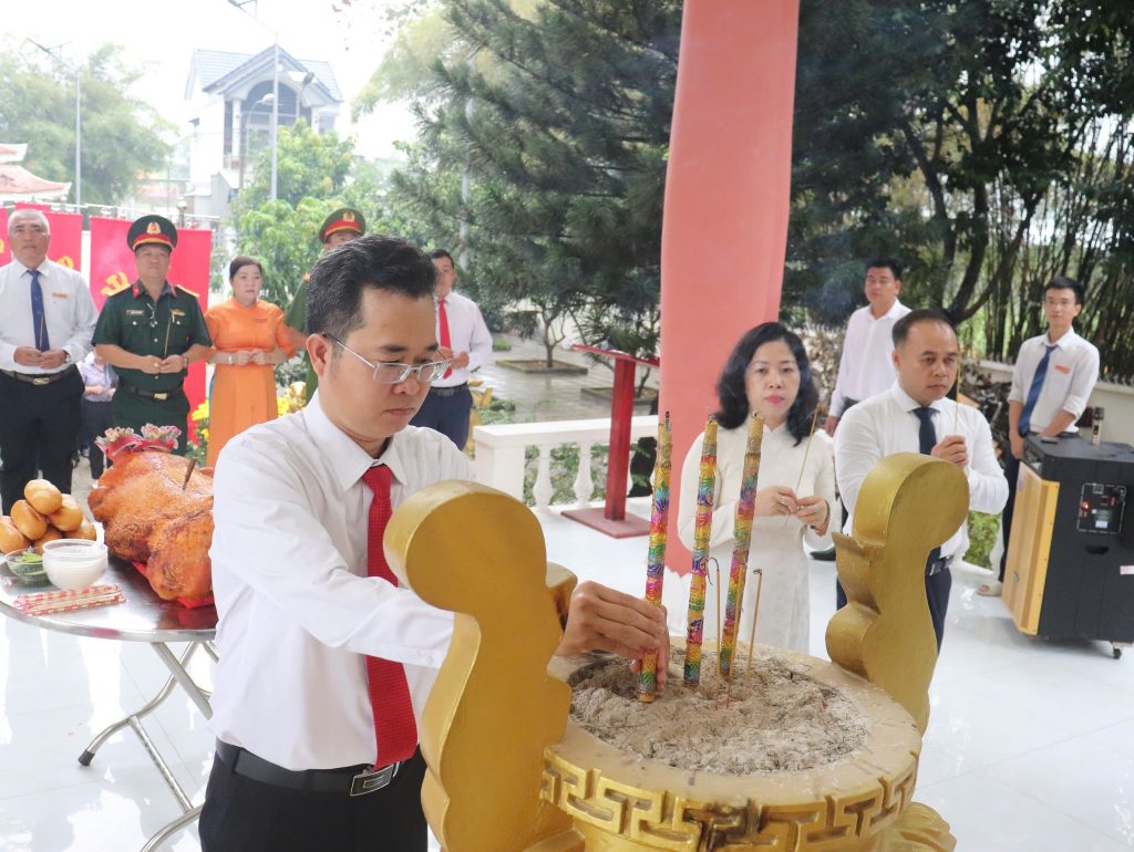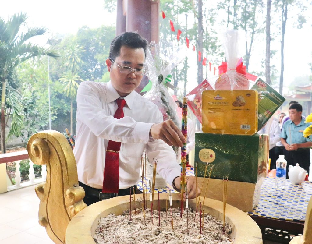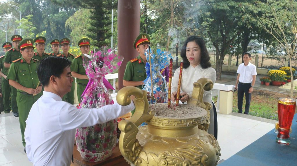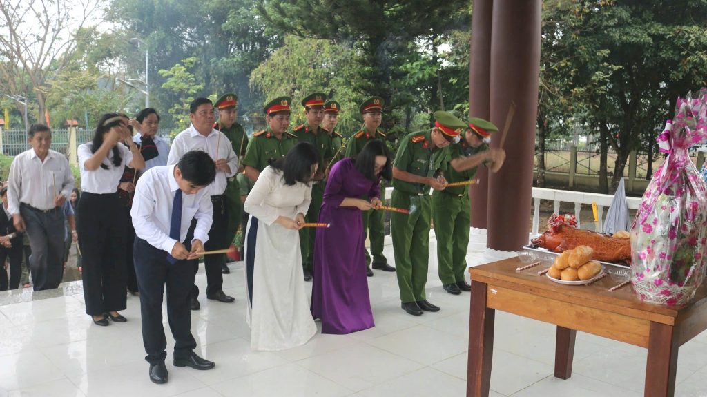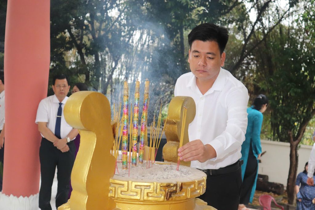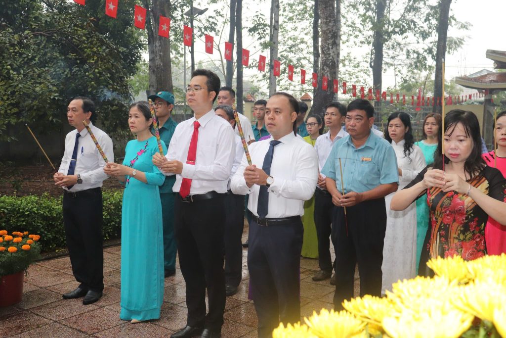 Đoàn đại biểu do đồng chí Nguyễn Minh Tuấn, Phó Bí thư Đảng ủy, Chủ tịch UBND xã làm trưởng đoàn viếng Đền Tưởng niệm Liệt sĩ xã Phú Hòa Đông (khu vực 2 – Đền Tưởng niệm các anh hùng liệt sĩ xã Tân Thạnh Tây (cũ)).