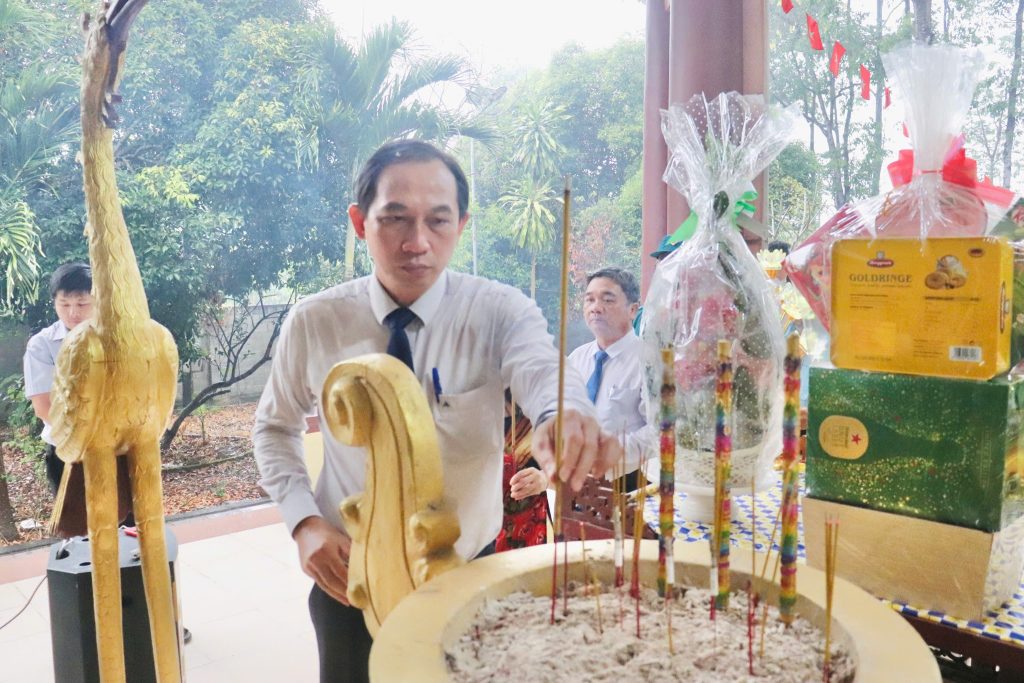 Đoàn đại biểu do đồng chí Nguyễn Văn Nghĩa, Bí thư Đảng ủy, Chủ tịch HĐND xã làm trưởng đoàn viếng Đền Tưởng niệm Liệt sĩ xã Phú Hòa Đông (khu vực 1 – Đền Tưởng niệm các anh hùng liệt sĩ xã Tân Thạnh Đông (cũ)).