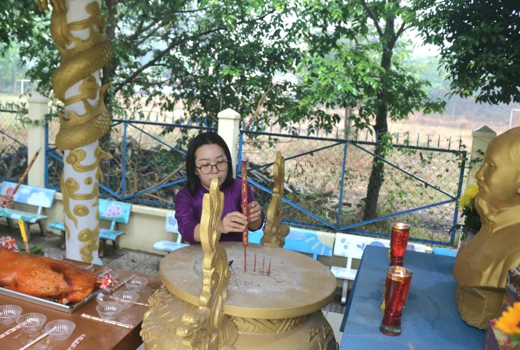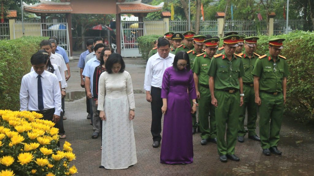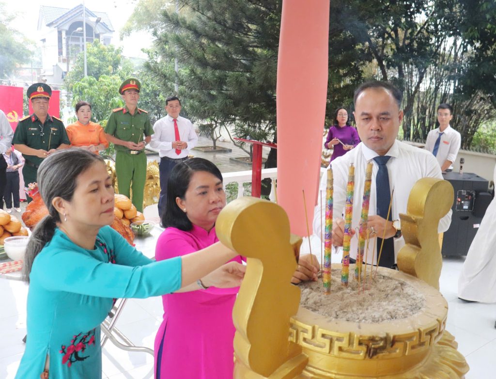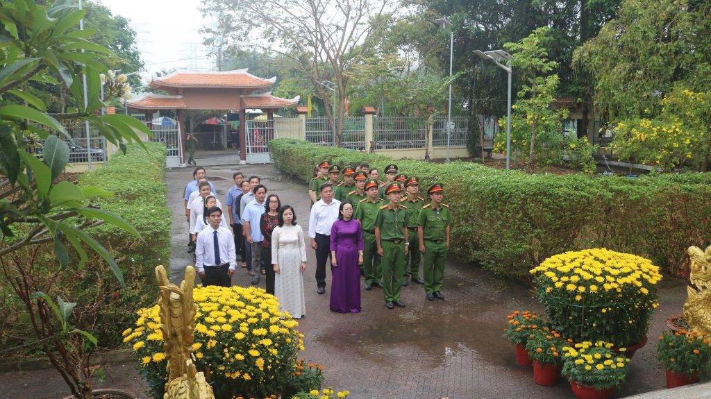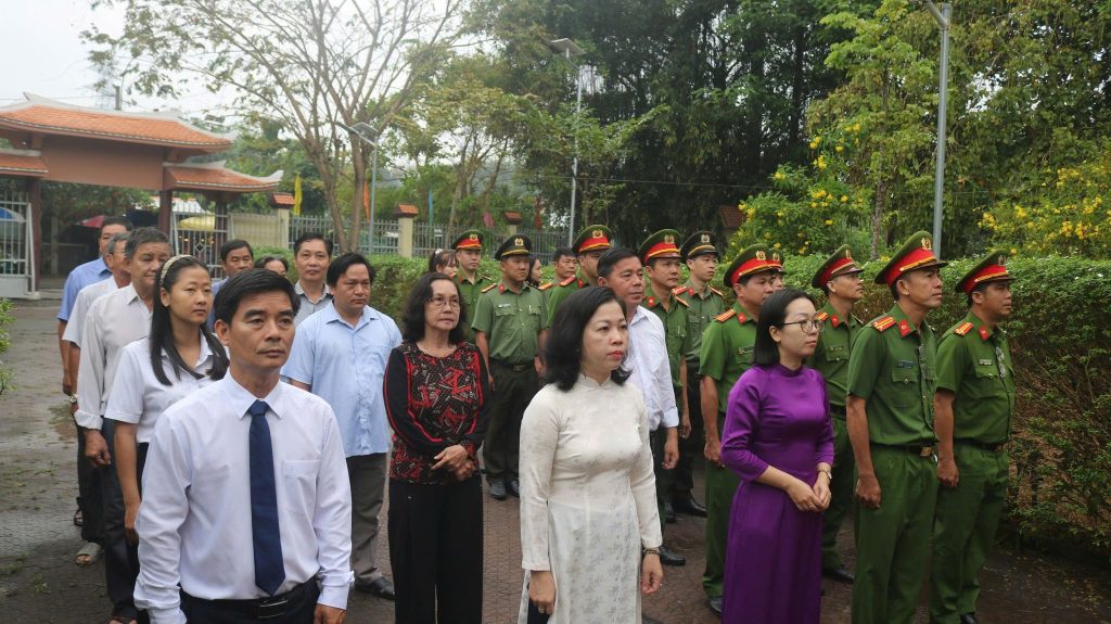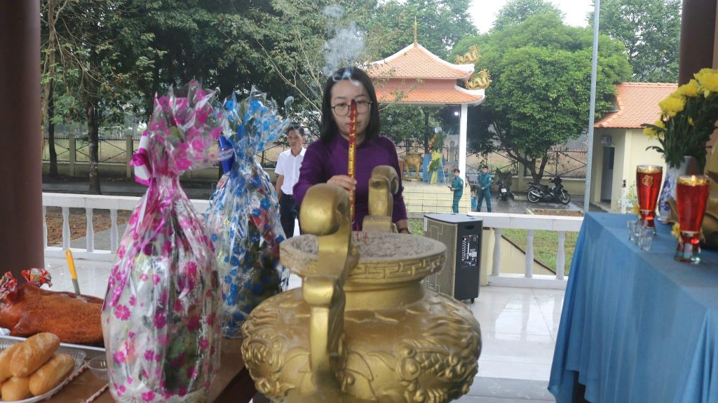 Đoàn đại biểu do đồng chí Lê Thị Ánh Tuyết, Phó Bí thư Thường trực Đảng ủy xã làm trưởng đoàn viếng Đền Tưởng niệm Liệt sĩ xã Phú Hòa Đông (khu vực 3 – Đền Tưởng niệm các anh hùng liệt sĩ xã Phú Hòa Đông (cũ)).