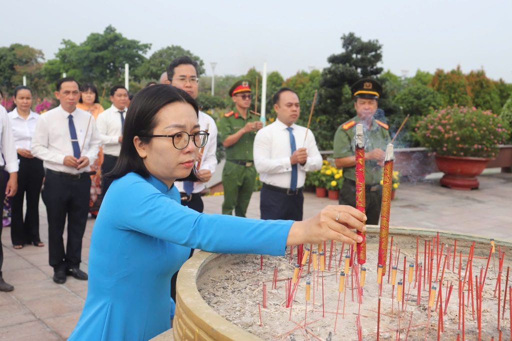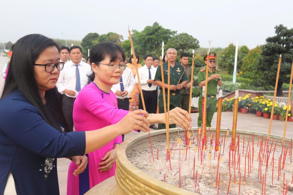 Đoàn đại biểu viếng Đền Tưởng niệm Liệt sĩ xã Phú Hòa Đông (khu vực 3) do đồng chí Lê Thị Ánh Tuyết, Phó Bí thư Thường trực Đảng ủy xã làm trưởng đoàn.