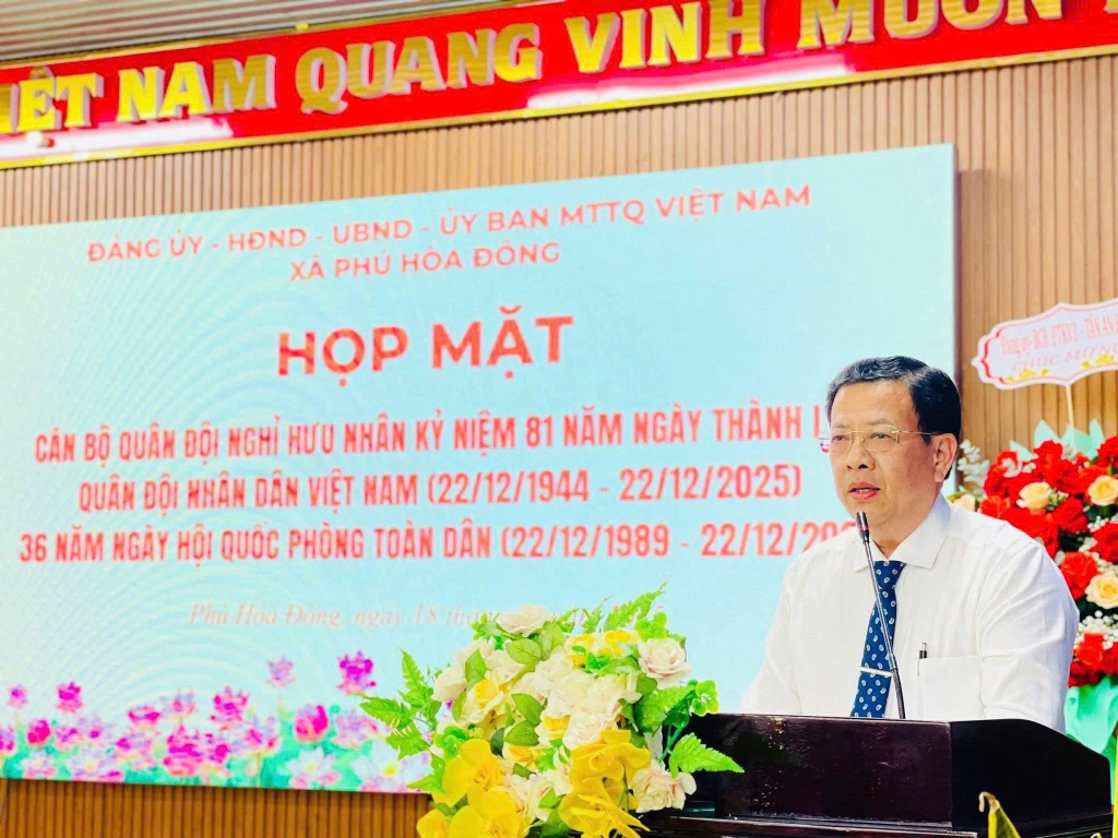 1. Đảng ủy – Hội đồng nhân dân – Ủy ban nhân dân – Ủy ban Mặt trận Tổ quốc Việt Nam xã Phú Hoà Đông, TP. Hồ Chí Minh tổ chức Họp mặt kỷ niệm 81 năm Ngày thành lập Quân đội Nhân dân Việt Nam (22/12/1944 – 22/12/2025) và 36 năm Ngày hội Quốc phòng toàn dân (22/12/1989 – 22/12/2025).