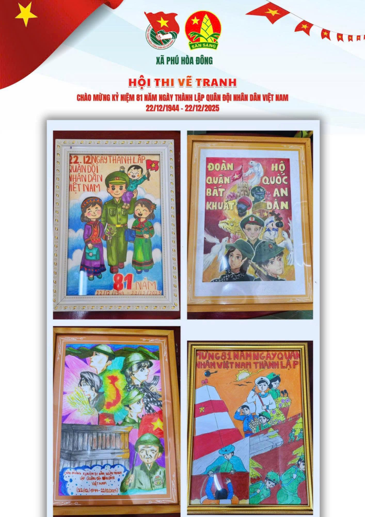3. Tổ chức Hội thi vẽ tranh chào mừng kỷ niệm 81 năm Ngày thành lập Quân đội Nhân dân Việt Nam với chủ đề ca ngợi hình ảnh Bộ đội Cụ Hồ.