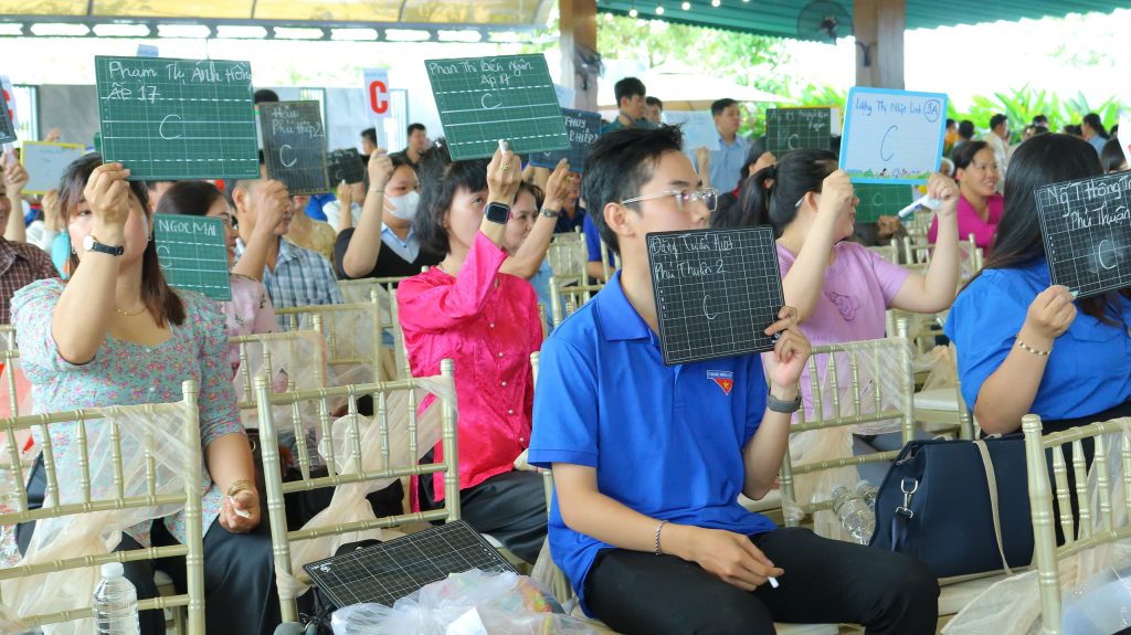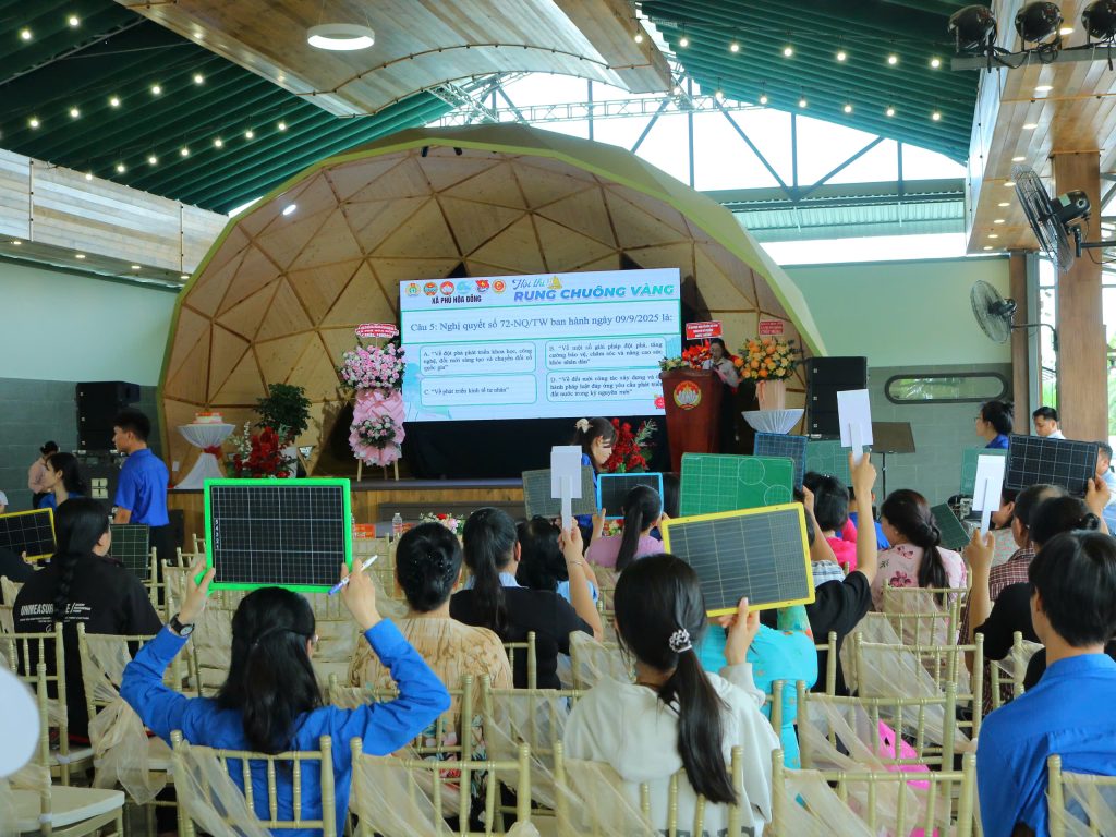 Vào ngày 21/11/2025, trong khuôn khổ chương trình Họp mặt kỷ niệm 95 năm ngày thành lập Mặt trận dân tộc thống nhất Việt Nam – Ngày truyền thống Mặt trận Tổ quốc Việt Nam (18/11/1930 – 18/11/2025), Ủy ban Mặt trận Tổ quốc Việt Nam – Đoàn thanh niên xã đã tổ chức Hội thi Rung chuông vàng với sự tham gia của đông đảo thí sinh đến từ 57 ấp trên địa bàn xã. Hội thi đã tìm hiểu các Nghị quyết Đại hội Đảng bộ các cấp, Đại hội Mặt trận Tổ quốc Việt Nam xã, các Nghị quyết của Đảng…