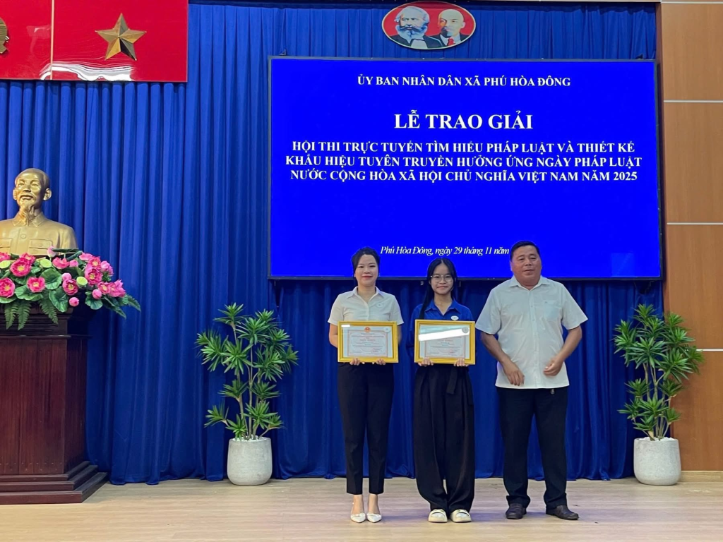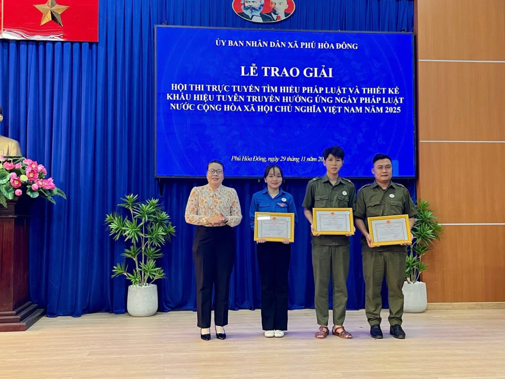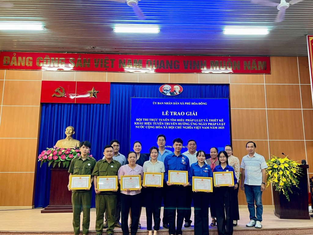 Lễ trao giải diễn ra trong không khí trang trọng, thể hiện sự quan tâm của chính quyền địa phương đối với công tác tuyên truyền pháp luật, đồng thời góp phần nâng cao hiểu biết và ý thức chấp hành pháp luật của người dân trên địa bàn xã Phú Hòa Đông.