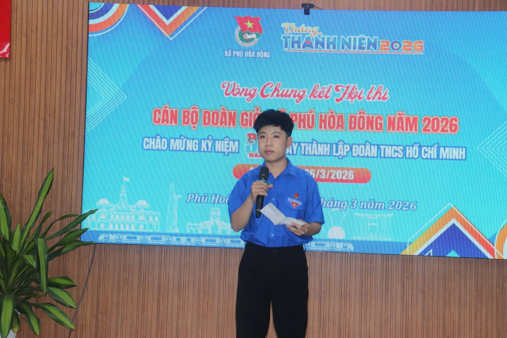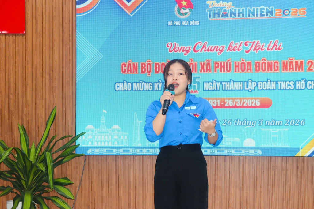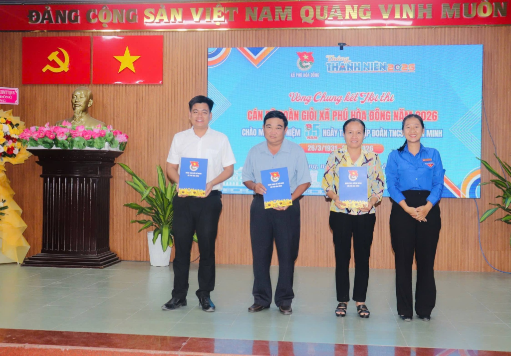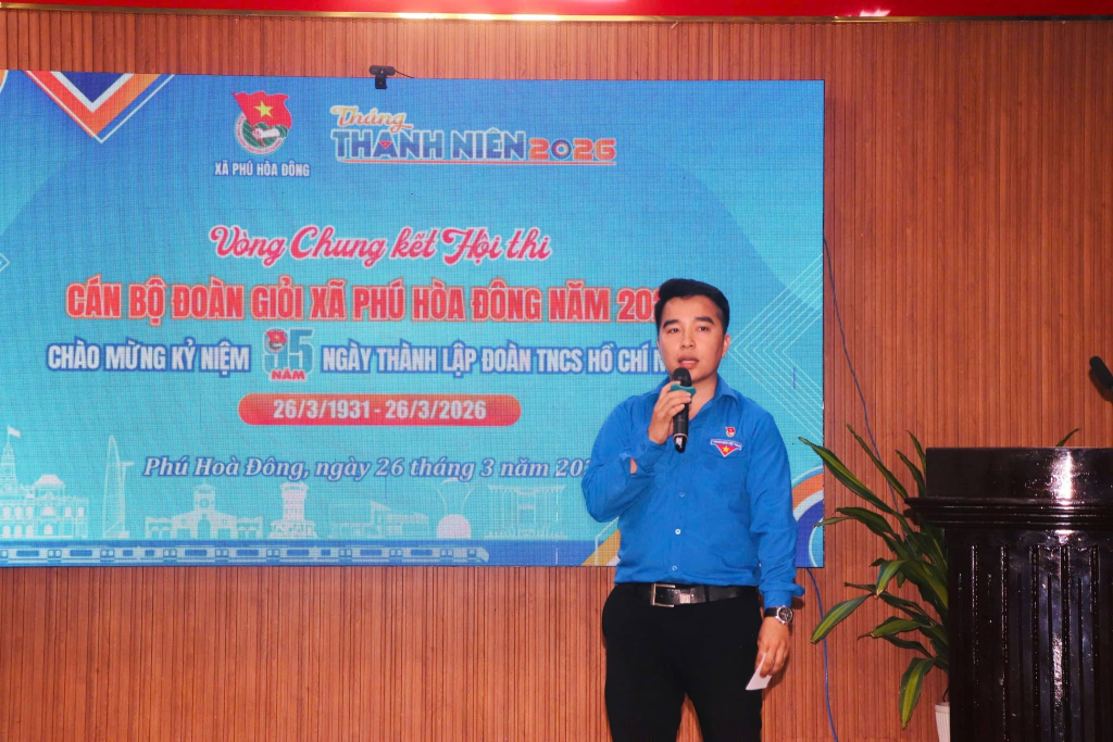 Trong không khí sôi nổi của Tháng Thanh niên năm 2026, kỷ niệm 95 năm Ngày thành lập Đoàn Thanh niên Cộng sản Hồ Chí Minh (26/3/1931 – 26/3/2026), chiều 26/3/2026, xã Phú Hòa Đông đã tổ chức Vòng Chung kết Hội thi Cán bộ Đoàn giỏi năm 2026 với sự tham gia của những cán bộ Đoàn tiêu biểu trên địa bàn.