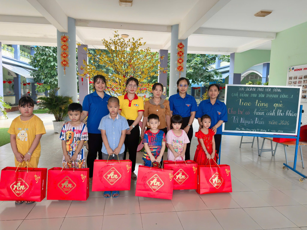 Nhằm thiết thực chăm lo Tết cho thiếu nhi có hoàn cảnh khó khăn, từ ngày 23/01 đến 27/01/2026, Chi đoàn Trường Mầm non Tân Thạnh Đông 1 đã tổ chức chương trình “Tết cho em” tại đơn vị.
