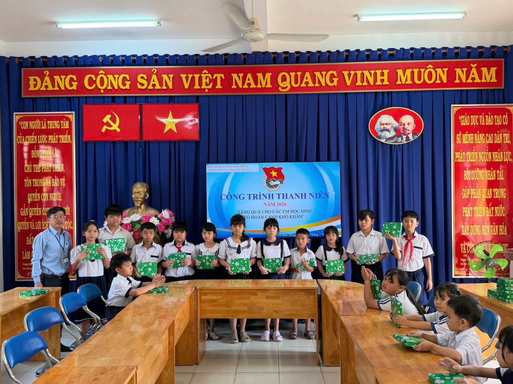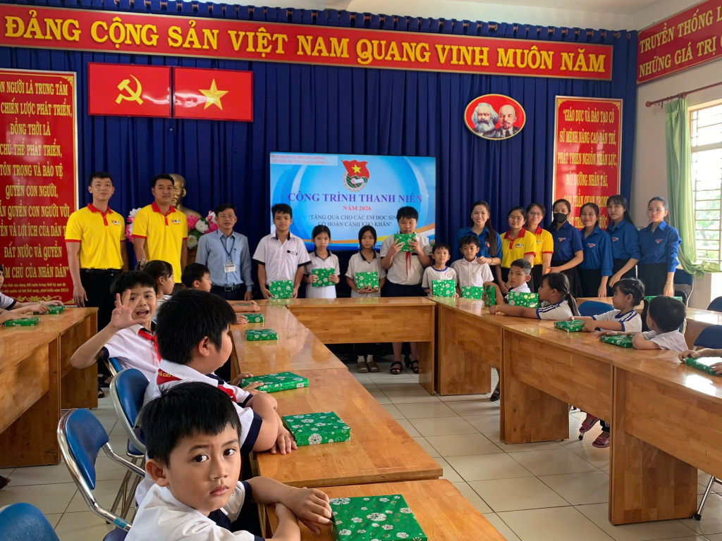 Chi đoàn giáo viên Trường Tiểu học Tân Thạnh Đông 2 đã triển khai thực hiện Công trình thanh niên năm 2026 với chương trình “Xuân chia sẻ” đầy ý nghĩa. Thông qua chương trình, Chi đoàn đã tổ chức trao tặng 30 phần quà đến các em học sinh có hoàn cảnh khó khăn đang học tập tại đơn vị. Những phần quà tuy giá trị không lớn nhưng thể hiện sự quan tâm, sẻ chia kịp thời, góp phần động viên tinh thần để các em vững tin, nỗ lực học tập và đón một mùa xuân ấm áp, yêu thương.